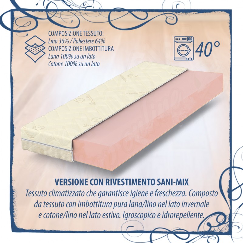 Materasso sfoderabile e lavabile in lavatrice per una maggiore igiene (VEDI TABELLA SOTTO PER LE TIPOLOGIE DI RIVESTIMENTO), con elevate caratteristiche anallergiche e traspiranti e lunga durata nel tempo. La cover/rivestimento del materasso è sfoderabile su tutti e 4 i lati e sganciabile per una maggiore praticità