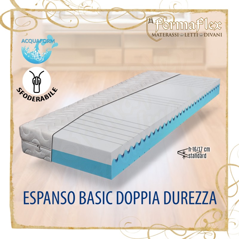 Materasso in poliuretano espanso alto circa 17 cm con doppia rigidità a portanza differenziata ed ergonomico. Rivestimento sfoderabile e lavabile con imbottitura traspirante ed anallergico. Materasso disponibile nelle versioni standard singolo, piazza e mezza e matrimoniale.