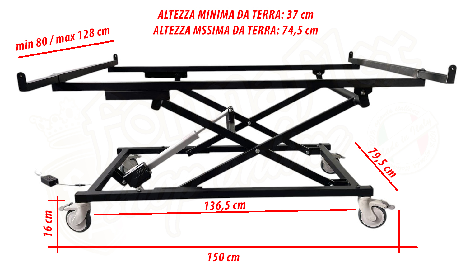 Il sollevatore elettrico a pantografo alzata motorizzata con ruote piroettanti con freno e telecomando senza fili per anziani e disabili è un presidio medico classe medicale detraibile ed acquistabile con iva agevolata al 4% in caso di invalidità con legge 104.